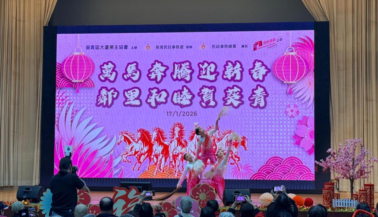 本校舞蹈組(中國舞及K-pop)受邀參與由葵青區大廈業主協會主辦、葵青民政事務處協辦、民政事務總署資助的「萬馬奔騰迎新春·鄰里和睦賀葵青」表演活動,學生於大窩口社區中心會堂向市民進行舞蹈表演。